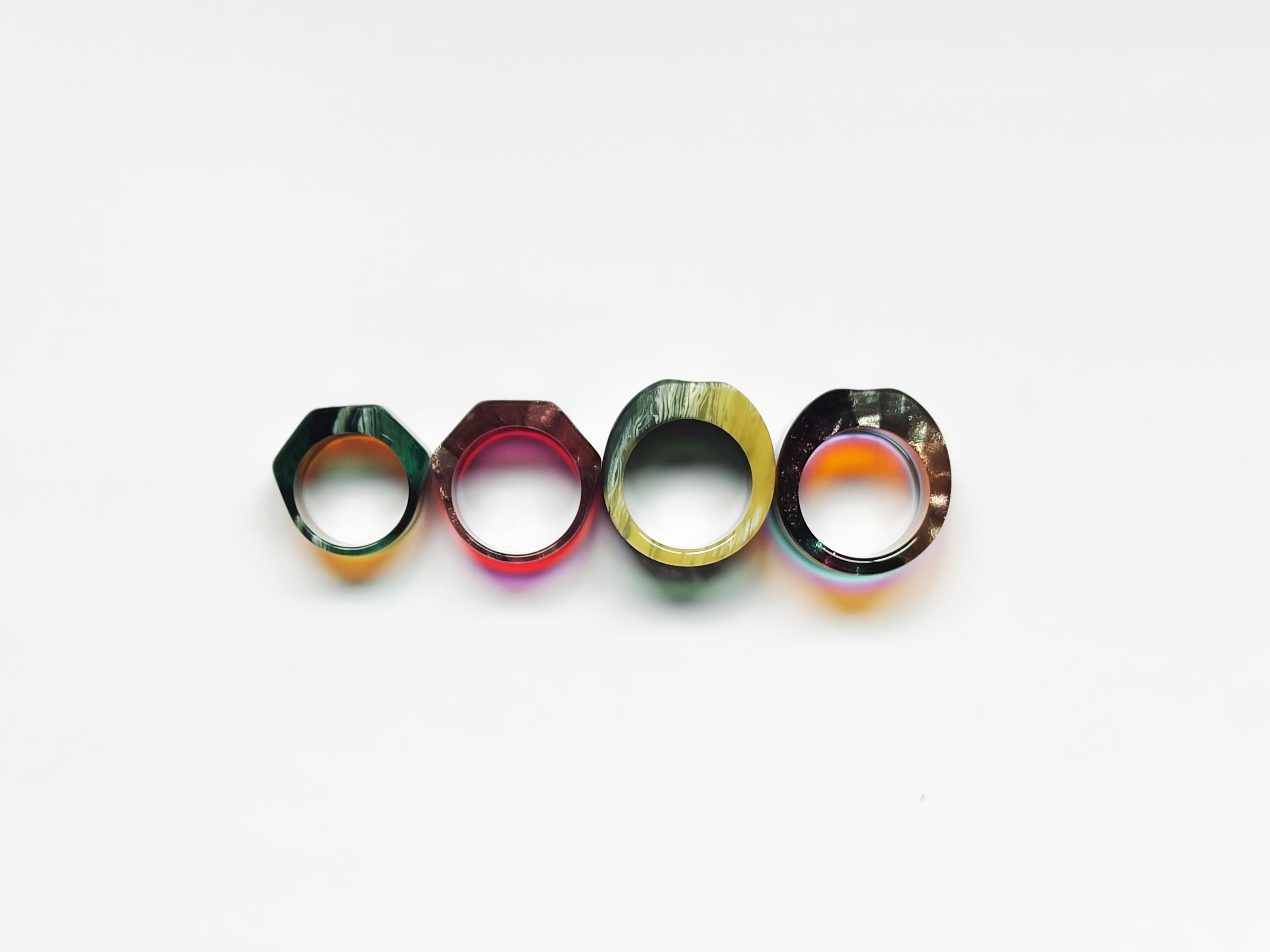 The perfect fusion of fashion and the environment————Hexagonal fiberboard acetate rings